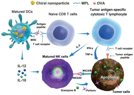 - Wang, W.; Zhao, J.; Hao, C.; Hu, S.; Chen, C.; Cao, Y.; Xu, Z.; Guo, J.; Xu, L.; Sun, M.; et al. The Development of Chiral Nanoparticles to Target NK Cells and CD8(+) T Cells for Cancer Immunotherapy. Adv. Mater. 2022, 34, e2109354. [Google Scholar] [CrossRef] [PubMed]