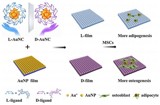 Schematic illustration of MSCs grown and differentiated on L/D-Au films [53].