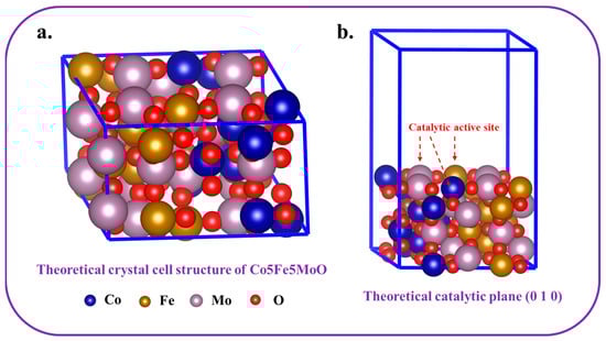 The theoretical crystal cell structure (a) and catalytic plane (0 1 0) of Co5Fe5MoO (b).