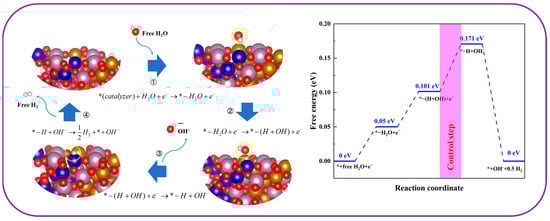 As we know, in alkaline conditions, the theoretical hydrogen evolution process was typically divided into four key steps: (2) the adsorption of water molecules, (3) the catalytic decomposition of water, (4) the formation of hydroxide ions, and (5) hydrogen evolution [48].
