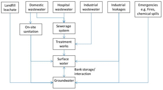 Different pathways for contaminants to reach groundwater in the urban environment, taken from [2]. Copyright 2020 Elsevier B.V.