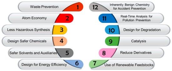The twelve principles of green chemistry, taken from [17]. Copyright 2022, The Authors.