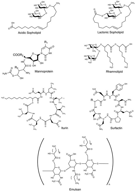 Different types of biosurfactants, taken from [5]. Copyright 2022, Sociedade Brasileira de Química.
