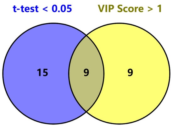 Overall, significant differences exist between Chinese and Argentine beef in terms of elemental content and carbon isotope levels, and these differences can be utilized to construct classification models through machine learning, enabling accurate beef classification. Among all the models used in this study, the PLS-DA model constructed using MetaboAnalyst achieved the highest classification accuracy (97.5%), followed by the CNN model (94.12%) and the Random Forest model (82.35%). By selecting variables with VIP values greater than 1 from the PLS-DA model, as well as variables with significant differences in elemental and carbon stable isotope analysis results (p < 0.05), a Venn diagram was constructed. The results are shown in Figure 6. This method identified nine key variables: Fe, Cs, As, δ13C, Co, V, Sc, Rb, and Ru. These variables show significant differences between the beef samples from the two regions and contribute significantly to the origin traceability model. Therefore, these nine variables can be regarded as key influencing factors for beef origin traceability.