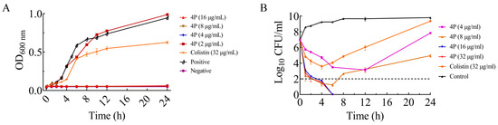 3.2.2. Growth Curve and Bactericidal Time-Kill Kinetics Assay