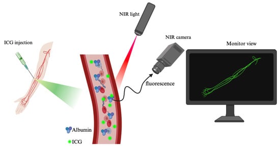 In contemporary medicine, ICG is a flexible and extensively utilized diagnostic and imaging tool. Assessing liver function is one of the main clinical applications of ICG. ICG is a great indicator for evaluating hepatic perfusion and liver function since it is mostly eliminated by the liver without being digested [89]. Important details regarding liver function can be gleaned from the rate at which the liver eliminates ICG from the bloodstream. Patients with liver conditions such as cirrhosis, hepatitis, and liver failure are tested for this condition. An extended ICG clearance time indicates hepatic dysfunction. Assessing a patient’s eligibility for liver transplantation can be aided by their ICG clearance. Treatment selections are guided by the test’s insightful information about the liver’s capacity to process and eliminate drugs [90]. ICG is used in indocyanine green angiography (ICGA) to see the eye’s choroid and retina. Ophthalmologists can investigate deeper layers of the eye with ICG’s NIR fluorescence, which is often not possible with conventional visible light procedures like fluorescein angiography. By evaluating macular degeneration, ICGA assists medical professionals in determining the state of the retina’s blood vessels [91,92]. ICG aids in the diagnosis and treatment of diabetic retinopathy by highlighting aberrant blood vessels in the condition. ICG is especially useful for identifying aberrant choroid blood vessel growth, which might be a symptom of conditions such as wet age-related macular degeneration (AMD) [93]. In oncology, ICG is being used more and more for tumor detection and FGS. ICG can be used to highlight lymph nodes, tumors, or aberrant tissue growth when administered intravenously [94]. In cancer procedures, ICG is used for lymphatic mapping, especially in cases of breast and melanoma cancer. The sentinel lymph node, the first lymph node to receive drainage from the tumor, receives the dye after it is injected close to the tumor site and passes through the lymphatic system [95]. By using fluorescence to guide the excision of these lymph nodes, surgeons can increase the precision of cancer staging [96]. ICG can assist in defining tumor boundaries during cancer procedures, guaranteeing the total removal of malignant tissues and lowering the chance of recurrence. ICG’s function in FGS has transformed the field of minimally invasive surgery. During resection procedures, ICG is utilized to visualize colon blood flow to make sure that healthy tissue is maintained and that the residual colon receives enough blood flow [97,98]. ICG can be used to assess coronary artery perfusion during heart surgery, helping surgeons identify areas that need revascularization. During procedures like liver resection or transplantation, surgeons evaluate the liver’s vasculature using ICG. The dye guarantees that vital blood arteries are maintained throughout surgery and aids in seeing the hepatic blood flow [99,100]. ICG is frequently used to evaluate vascular patency and visualize blood vessels. ICG fluoresces make it possible to see blood flow, tissue perfusion, and the vascular network in real-time. In patients with cardiovascular disorders, ICG can be used to measure cardiac output and analyze hemodynamics [101,102]. ICG is used in vascular surgery to help surgeons see blood vessels so they can prevent injury and ensure that tissues receive enough blood. It is particularly useful for endoscopic and bypass surgery [103]. ICG is being utilized more and more in neurosurgery to measure cerebral blood flow. This is crucial for operations like brain tumor resections and brain aneurysm surgeries when there is a risk to brain tissue because of inadequate blood flow [104,105]. The real-time visualization of cerebral blood flow might greatly enhance surgical results by assisting surgeons in avoiding ischemia zones and guaranteeing sufficient perfusion to vital brain locations [106]. After surgery, ICG can be used to evaluate tissue perfusion and make sure that recovery is proceeding as planned. For instance, ICG can be administered during organ transplantation to confirm that the recipient organ is receiving enough blood flow, which can assist in the detection of rejection or complications such as graft failure early on [29]. ICG is used in medical research, specifically in tissue engineering and medication delivery systems, in addition to its clinical applications. ICG is used by researchers to monitor drug distribution in the body, investigate blood flow dynamics, and investigate novel treatments for diseases like cancer, heart disease, and neurological problems.