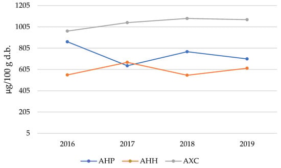 - ash content in seeds (dry basis):AXC (3.10%) > AHP (2.47%) > AHH (2.25%).