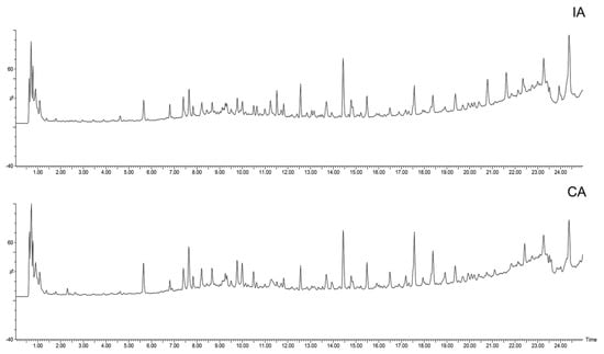 Comparison of total ion flow graphs (TIC) of IA and CA.