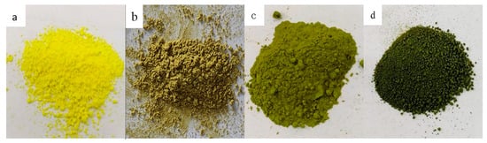 The colors of the raw materials and materials with different doping ratios of MWNTs: (a) KP; (b) KP/MWNTs-a; (c) KP/MWNTs-b; and (d) KP/MWNTs-c.
