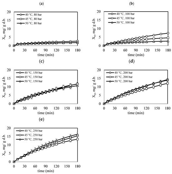 | T [°C] | P [bar] | Density [kg/m3] | Extraction Yield [mg Extract/g Dry Basis] |