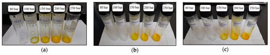 - Cárdenas-Toro, F.P.; Meza-Coaquira, J.H.; Nakama-Hokamura, G.K.; Zabot, G.L. Obtaining Bixin-and Tocotrienol-Rich Extracts from Peruvian Annatto Seeds Using Supercritical CO2 Extraction: Experimental and Economic Evaluation. Foods 2024, 13, 1549. [Google Scholar] [CrossRef]