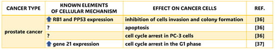 | cell cycle arrest in PC-3 cells apoptosis of cells | In vitro LNCaP cell line | [36] | |