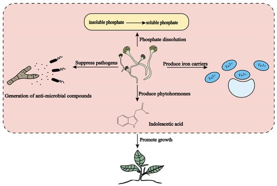 The Bacillus genus represents the most efficient endophytes for the solubilization of phosphorus, which were extracted and screened plant-growth-promoting rhizobacteria (PGPR) from cotton roots that solubilize phosphorus and enhance cotton growth [79], identified as Bacillus. Research indicates that Bacillus subtilis exhibits significant phosphate solubilization capacity and can augment the synthesis of indole-3-acetic acid (IAA) and organic acids, hence improving plant resilience. The growth index of wheat with the integration of phosphates and Bacillus subtilis were markedly enhanced [101]. The endophytic fungus Bacillus altitudinis GQYP101, extracted from the roots of goji berries, have the ability to solubilize phosphorus and enhance the growth and development of corn. The examination of whole-genome sequencing of its growth-promoting processes indicated that this endophytic fungus is linked to phosphate solubilization, alkaline phosphatase activity, trendization, and motility [102].