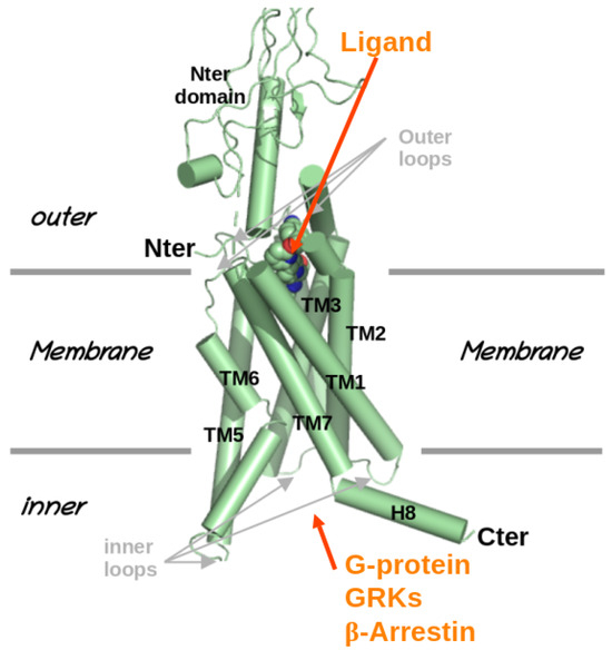 - Zhang, M.; Chen, T.; Lu, X.; Lan, X.; Chen, Z.; Lu, S. G protein-coupled receptors (GPCRs): Advances in structures, mechanisms, and drug discovery. Signal Transduct. Target. Ther. 2024, 9, 88. [Google Scholar] [CrossRef] [PubMed]