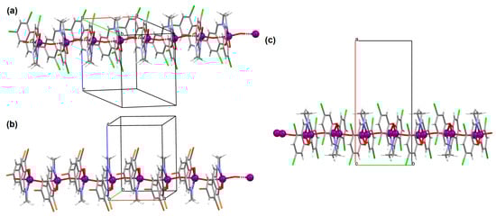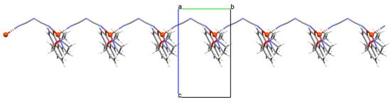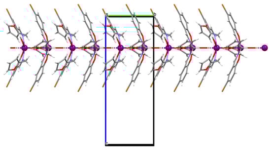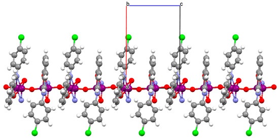 Fragment of crystal structure showing formation of a 1D chain of 2 (Table 1) viewed along the b-axis [33,67,93].