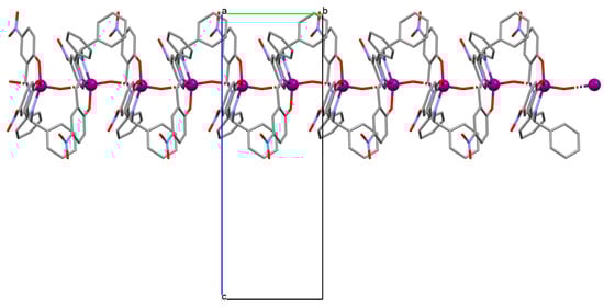 Fragment of crystal structure showing formation of a 1D chain of 4 (Table 1) viewed along the b-axis [33,68,93]. Solvent molecules are omitted for clarity.