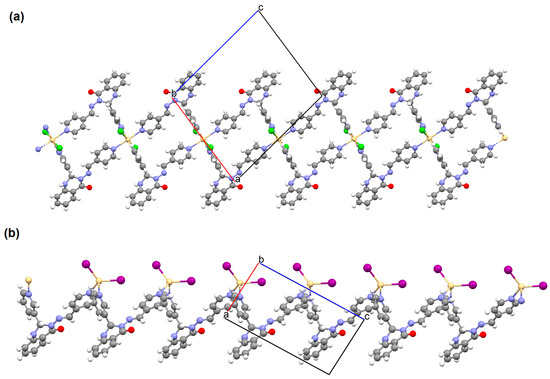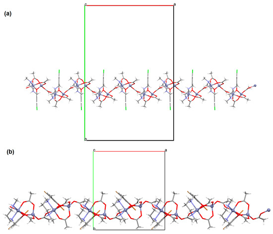 Fragment of crystal structure showing formation of 1D chain of (a) 6, (b) 7 (Table 1) [33,69,93].