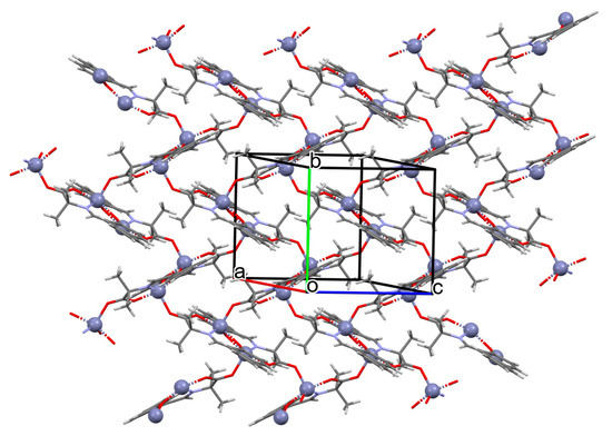 Fragment of crystal structure showing formation of a 2D network of 5 (Table 1) [33,69,93].