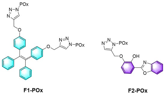 In this work, we designed two kinds of POx-based hybrids F1-POx and F2-POx, where tetraphenylenethene (TPE) and hydroxyphenylbenzoxazole (HBO) were introduced into POx through a copper-catalyzed azide-alkynyl cycloaddition (CuAAC) coupling reaction, respectively (Scheme 1). It is envisioned that F1-POx and F2-POx will produce ratiometric fluorescence signal upon temperature change because the thermoresponsive POx segment of F1-POx and F2-POx undergo phase transition process as temperature varies. To the best of our knowledge, this is the first study to report POx-based thermometers with appended a single fluorophore that can produce ratiometric fluorescence change for temperature sensing. Compared with the previously reported ratiometric temperature probes, F1-POx and F2-POx offer several additional advantages, such as excellent biocompatibility, good photostability, supra-high sensitivity and favorable reversibility.