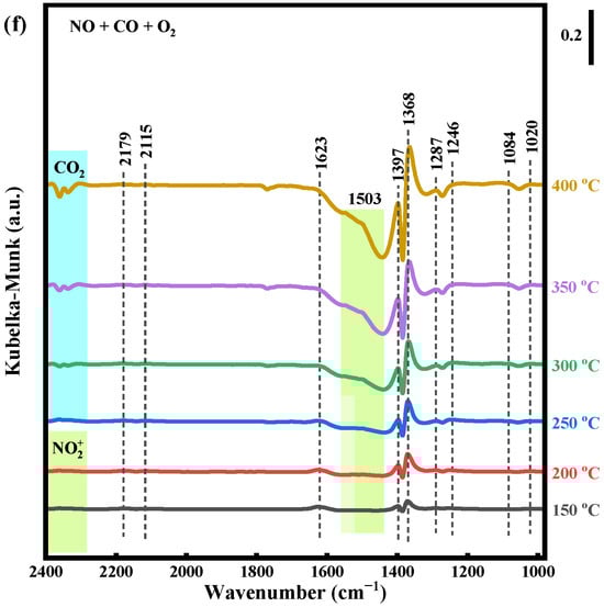 - Hadjiivanov, K.I. Identification of Neutral and Charged NxOy Surface Species of IR Spectroscopy. Catal. Rev. 2007, 42, 71–144. [Google Scholar] [CrossRef]