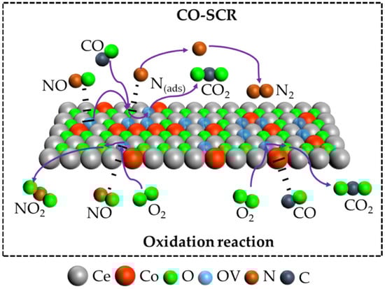 - Zhang, S.; Lee, J.; Kim, D.H.; Kim, T. NO reduction by CO over CoOx/CeO2 catalysts: Effect of support calcination temperature on activity. Mol. Catal. 2020, 482, 110703. [Google Scholar] [CrossRef]
