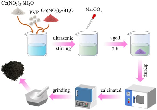 - Zeng, J.; Zhong, X.M.; Yu, J.; Zhang, T.; Wang, Y.Z.; Chang, H.Z. Promotional Effect of Preparation Methods on Catalytic Reduction of NO by CO over CoCeOx Catalysts. Ind. Eng. Chem. Res. 2020, 59, 34–41. [Google Scholar] [CrossRef]