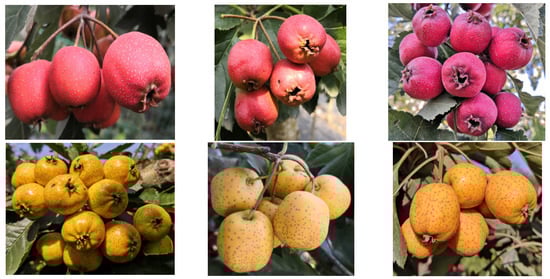 The genus Crataegus (Rosaceae), commonly known as hawthorn, comprises approximately 1000 species distributed across Europe, North America, and East Asia []. This genus has gained recognition as a valuable source for natural pigment extraction and antioxidant-rich functional food development []. Among the 12 species and six varieties native to China, C. pinnatifida Bge. var. major N.E.Br. (Chinese hawthorn) dominates commercial cultivation. While primarily consumed fresh or processed, its peel exhibits significant anthocyanidin accumulation, with most cultivars displaying red pigmentation and rare occurrences of yellow/orange phenotypes [,].
