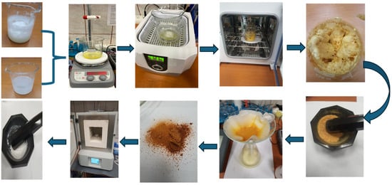 The elaboration process flux presented in Figure 8 outlines each stage, from the initial solution preparation to the final powdered nanostructure product.