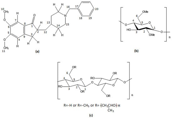 Zoupanou, N.; Papakyriakopoulou, P.; Georgiou, N.; Cheilari, A.; Javornik, U.; Podbevsek, P.; Tzeli, D.; Valsami, G.; Mavromoustakos, T. Spectroscopic Characterization Using 1H and 13C Nuclear Magnetic Resonance and Computational Analysis of the Complex of Donepezil with 2,6-Methyl-β-Cyclodextrin and Hydroxy Propyl Methyl Cellulose. Molecules 2025, 30, 1169. https://doi.org/10.3390/molecules30051169