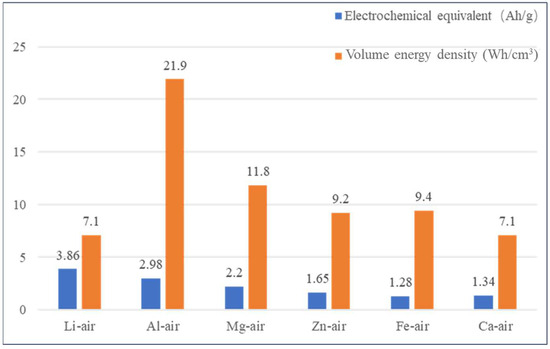 Comparison of energy density of different metal–air batteries.