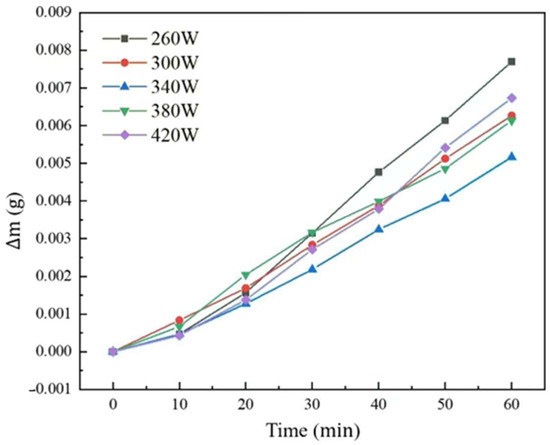 The weightlessness curve of the aluminum anode printed under different laser powers was shown in Figure 8, and linear fitting was applied to reveal the corrosion rate of each sample seen in Table 1.