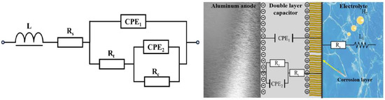 Equivalent circuit of TiB2/6061 anode in composite electrolyte system.
