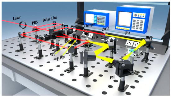 Optical parameters play a crucial role in the study of matter and materials. The absorption coefficient is important physical parameter for describing substances. THz-TDS records the time-domain waveform of THz pulses, and through time-domain spectral data, we can obtain other relevant optical information of the sample [29,30].
