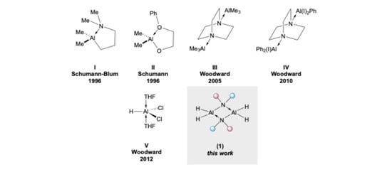 - Hodgson, M.C.; Khan, M.A.; Wehmschultem, R.J. Synthesis and Reactivity of Amidoaluminum Hydride Compounds as Potential Precursors to AlN. J. Cluster Sci. 2002, 13, 503–520. [Google Scholar] [CrossRef]