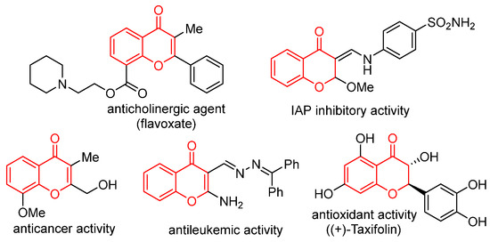 - Gaspar, A.; Matos, M.J.; Uriarte, J.; Borges, F. Chromone: A valid scaffold in medicinal chemistry. Chem. Rev. 2014, 114, 4960–4992. [Google Scholar] [CrossRef] [PubMed]