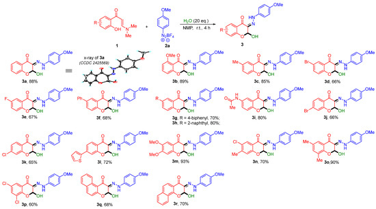 o-Hydroxyphenylenaminones 1 were prepared according to the literature [57,58,59], and aryldiazonium salts 2 were prepared according to the literature [60,61]. Other reagents were purchased from Energy Chemical and Adamas-beta® (From Shanghai, China).