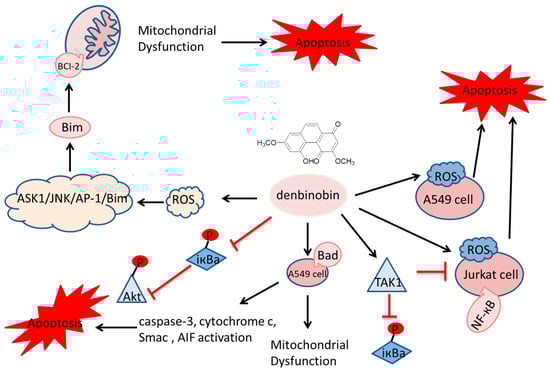 Phenanthrene and dihydrophenanthrene, isolated from various plants, have demonstrated cytotoxic properties against specific tumor cell lines [12]. In vitro effects may be mediated by several potential mechanisms: cell membrane rupture, impaired cell metabolism, DNA damage or a combination of these. Inducing apoptosis in tumor cells is a primary anticancer strategy and a common mechanism of various anticancer drugs, involving multiple apoptotic mediators that lead to programmed cell death (Figure 2).