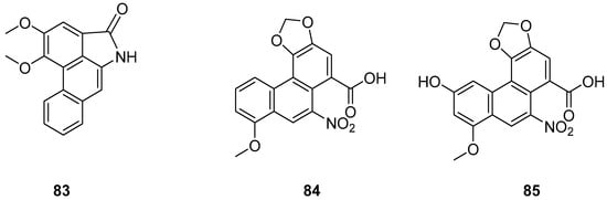 Although phenanthrenes themselves are not carcinogenic, they serve as prototype molecules for the biological studies of carcinogenic compounds such as benzo[a]anthracene, dibenzo[a,h]anthracene and benzo[a]pyrene. These compounds were classified as carcinogens by the World Health Organization in 2017 [2]. For instance, the metabolism of deuterated phenanthrene in humans has been used as a marker to assess the potential susceptibility of smokers to lung cancer [3]. Aristolochic acid, a nitrophenic acid compound, can cause various cancers such as urothelial, renal cell, hepatocellular, biliary tract and gastrointestinal cancers when ingested through Chinese herbal medicines, skin contact or the inhalation of herbal powder [4]. AAs comprise a group of nitrophenanthrene organic acids naturally present in Aristolochia plants such as Radix Aristolochiae fangchi and Asarum caudigerellum extensively utilized in traditional Chinese medicine as raw materials [5]. AAI, the most prevalent compound, is found in nearly all Aristolochia plants, often co-existing with aristolactams [4]. The primary toxic components in these compounds are AAI and AAII [6]. Catalyzed by nitroreductase, some of these compounds are reduced to aristolochic lactam, while others interact with DNA during the reduction process to form adducts. Nitro groups are critically toxic in AA derivatives, with methoxy and hydroxyl groups further enhancing toxicity. AAI is notably the most toxic element in Aristolochia plants. Further studies have confirmed the strong nephrotoxicity of AA and its metabolite, aristolochic lactam. The mutation and carcinogenic toxicity of AA are linked to its metabolite, AA lactam nitrogen ion, due to its strong electrophilic nature. It can bind to the extracyclic amino groups of DNA bases, forming adducts that may mutate the RAS and p53 genes, subsequently inducing tumors [7,8]. In fact, researchers found the tumor inhibitory activity of AA in the early stage of the study but eventually slowed down due to the toxicity of AA [9,10,11]. In this paper, we summarize the research on the antitumor activity and toxicity of phenanthrenes. To further explore their potential of toxicity-effect transformation, future strategies may include structural modification, traditional Chinese medicine processing techniques or other biological approaches to achieve. In addition, we can gain a more comprehensive understanding through more advanced research design and methods.