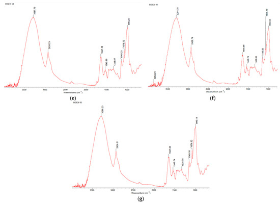 Fourier transform infrared spectroscopic (FT-IR) spectra of triticale varieties: (a) Costel; (b) Fanica; (c) Ingen 33; (d) Ingen 35; (e) Ingen 54; (f) Ingen 40; (g) Ingen 93.