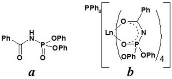 Recently, we have reported highly luminescent and triboluminescent coordination compounds of EuIII and TbIII ions with carbacylamidophosphate ligand–diphenyl-N-benzoylamidophosphate (HL) of the general formula PPh4[LnL4] (Scheme 1) [20]. Considering the good stability of complexes of this type during rather long-term storage and the suitability of the ligand’s lowest triplet state for the sensitization of lanthanide luminescence, we have extended studies of tetrakis-complexes PPh4[LnL4] by the introduction of other lanthanide ions, such as NdIII, SmIII, DyIII, and TmIII. The complexes were structurally characterized; their luminescent properties were investigated; and magnetic studies of PPh4[DyL4] were conducted.
