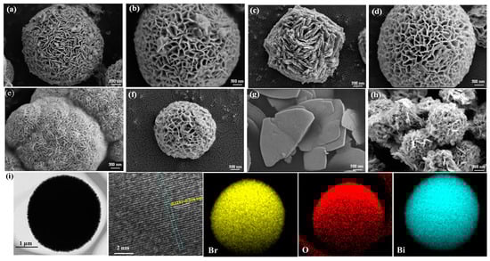 - Han, L.P.; Guo, Y.X.; Lin, Z.; Huang, H.W. 0D to 3D controllable nanostructures of BiOBr via a facile and fast room-temperature strategy. Colloids Surf. A 2020, 603, 125233. [Google Scholar] [CrossRef]