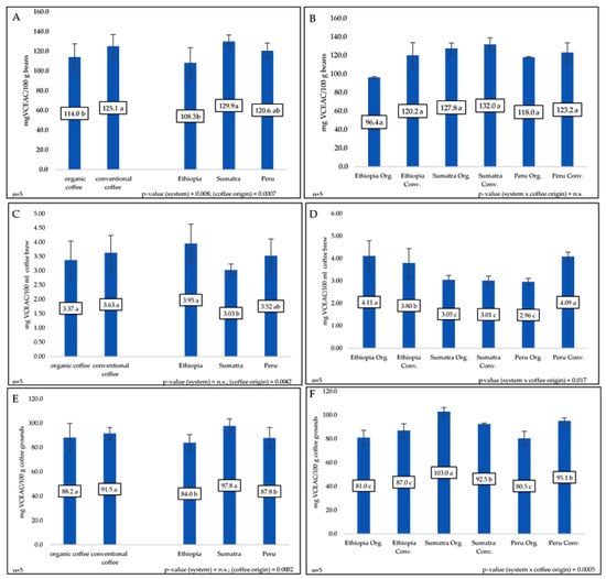 Ponder, A.; Krakówko, K.; Kruk, M.; Kuliński, S.; Magoń, R.; Ziółkowski, D.; Jariene, E.; Hallmann, E. Organic and Conventional Coffee Beans, Infusions, and Grounds as a Rich Sources of Phenolic Compounds in Coffees from Different Origins. Molecules 2025, 30, 1290. https://doi.org/10.3390/molecules30061290