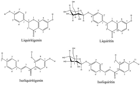 Structures and atom numbering of the four flavonoid compounds derived from licorice.