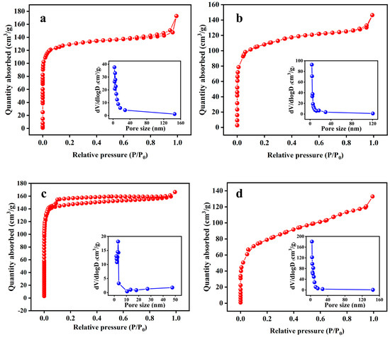 An appropriate amount of the sample was weighed and degassed at 200 °C for 12 h. Subsequently, the N2 adsorption–desorption isotherm of the sample was obtained at 77 K using a fully automatic SSA tester. The SSA of the sample was determined via the BET method, and the pore-size distribution was determined using the BJH method.