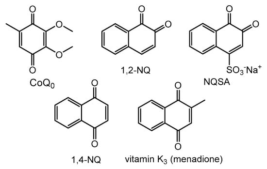 The following abbreviations are used in this manuscript: CoQ0, 2,3-dimethoxy-5-methyl-p-benzoquinone; EDTA, ethylenediaminetetraacetic acid; HRP, horseradish peroxidase; MB, methylene blue; MTT, 3-(4,5-Dimethylthiazol-2-yl)-2,5-diphenyltetrazolium bromide; NaBH4, sodium borohydride; 1,2-NQ, 1,2-naphthoquinone; NQSA, 1,2-naphthoquinone sulfonic acid; 1,4-NQ, 1,4-naphthoquinone; PB, phosphate buffer; pheoA, pheophorbide A; PMS, phenazine methosulfate; TEOA, triethanolamine.
