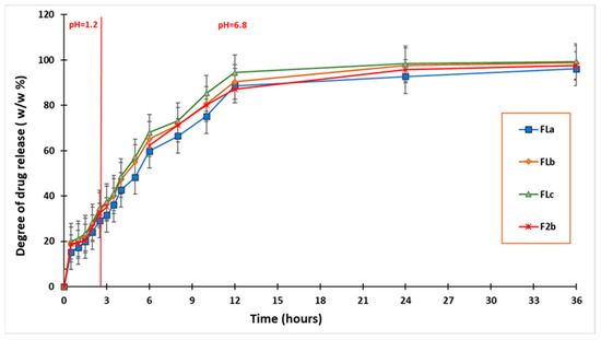 Formulations Fla, FLb, and FLc showed variations in tablet mass within the limits set by European Pharmacopoeia, 11th ed. [30].