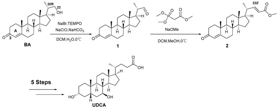 15. Wang, J.; Gu, X.Z.; He, L.M.; Li, C.C.; Qiu, W.W. Synthesis of ursodeoxycholic acid from plant-source (20S)-21-hydroxy-20-methylpregn-4-en-3-one. Steroids 2020, 157, 108600. [Google Scholar] [CrossRef] [PubMed]