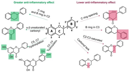 Structural motifs associated with anti-inflammatory effects in flavonoids.