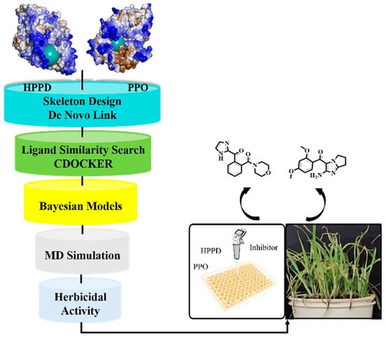 - Fu, Y.; Ye, T.; Liu, Y.X.; Wang, J.; Ye, F. Based on the Virtual Screening of Multiple Pharmacophores, Docking and Molecular Dynamics Simulation Approaches toward the Discovery of Novel HPPD Inhibitors. Int. J. Mol. Sci. 2020, 21, 5546. [Google Scholar] [CrossRef]