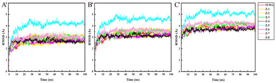 3.4. MD Simulation and Binding Free Energy Calculation